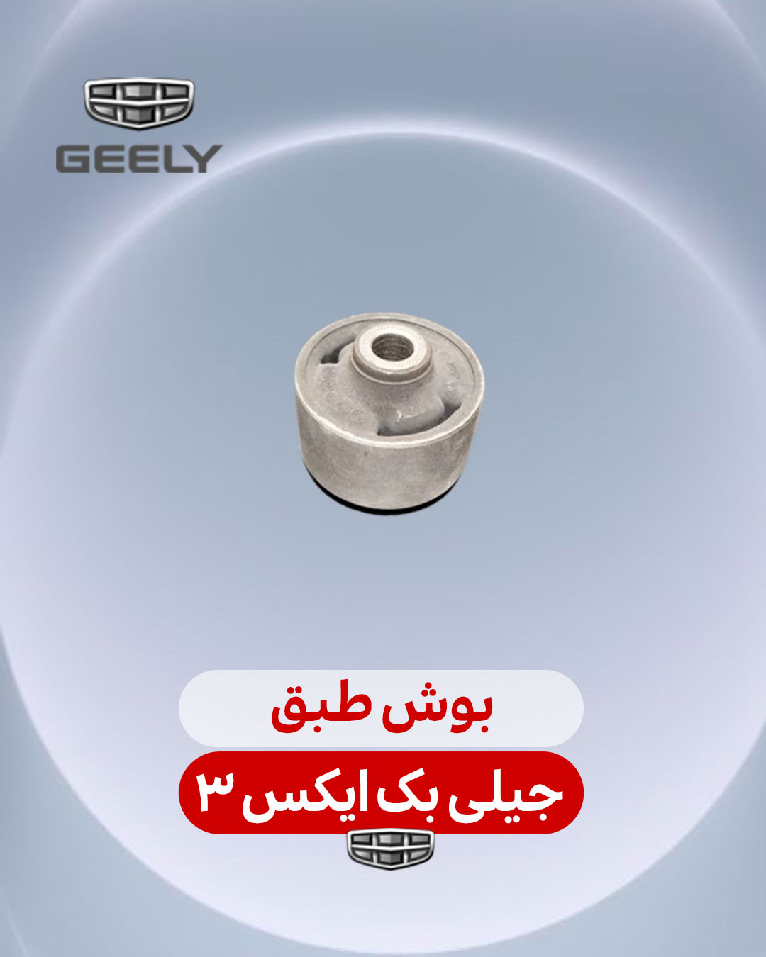در جیلی بک ایکس 3، بوش طبق از جنس لاستیک مقاوم یا پلی اورتان ساخته میشود تا بتواند نیروهای وارده از جاده و وزن خودرو را تحمل کند و در عین حال انعطاف لازم برای حرکت طبقها را فراهم کند. این قطعه با جلوگیری از تماس مستقیم فلزات، اصطکاک و صدای اضافی را کاهش میدهد و مانع آسیب دیدن مفصلها و قطعات فلزی سیستم تعلیق میشود.